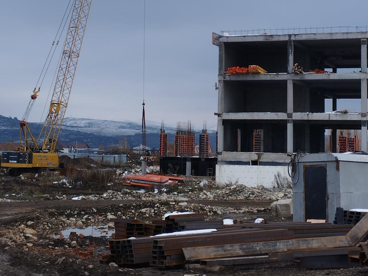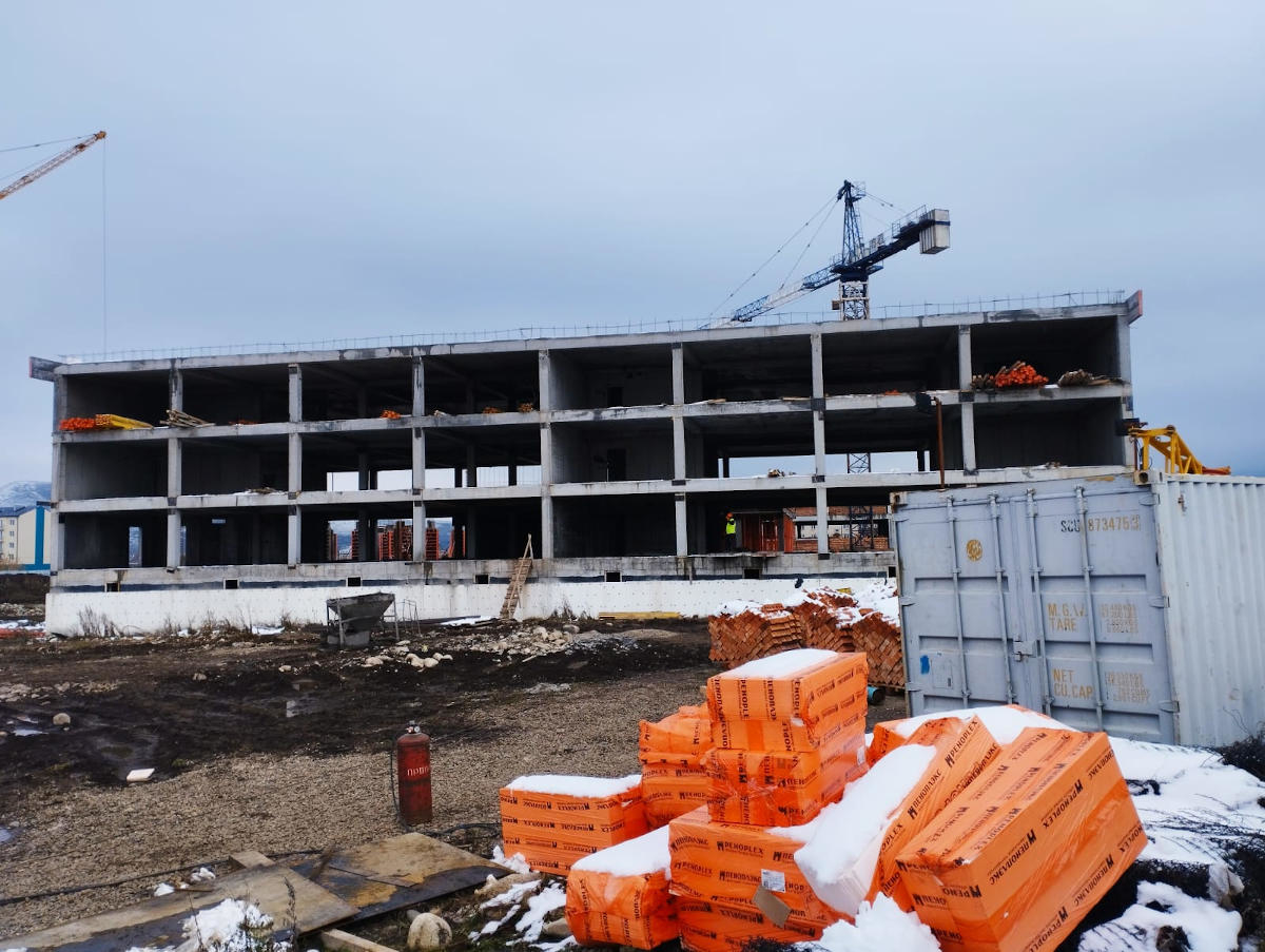 — Сейчас уже можно констатировать, что так называемый первичный этап строительства мы благополучно миновали, — пояснил начальник участка Алекандр Чанов. — На блоке «А» полностью завершены бетонные работы. Стены подняты на необходимую высоту. Каменщики приступили к кладке кирпича в оконных и дверных проемах. Аналогичная картина и в блоке «В»: здесь не только завершены бетонные работы, но и  хлопоты каменщиков на финишной прямой. Несколько ниже показатели на третьем блоке — «Б». Но это не отставание от графика, а плановые мероприятия. Нет никаких проблем с материалами, своевременной их доставкойт, техникой и механизмами. Сейчас лишь одних рабочих — сварщиков, бетонщиков, каменщиков и представителей иных профессий — на объекте насчитывается около сорока человек. Весомую помощь, снижающую уровень ручного труда, оказывает техническая поддержка: функционируют три подъёмных крана, экскаватор, два самосвала, погрузчик и миксеры, доставляющие бетонную смесь.