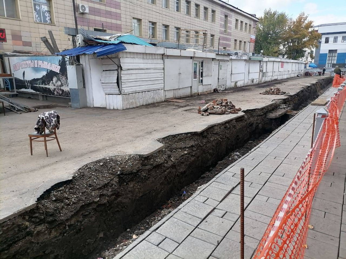 На протяжении длительного времени территория возле торгового дома «Әлем» огорожена сигнальными лентами. На участке проводят земляные работы. По информации АО «Шығыс Жылу», работы ведут частники, идёт замена теплопровода.