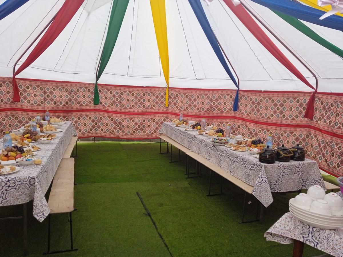 Особое место, как и положено, занял дастархан. Гостей щедро угощали главным символом праздника — наурыз коже, а также горячими баурсаками, аромат которых разносился далеко за пределы двора. Люди делились угощением, общались, поздравляли друг друга — всё это создавало ту самую атмосферу, ради которой и существует Наурыз.