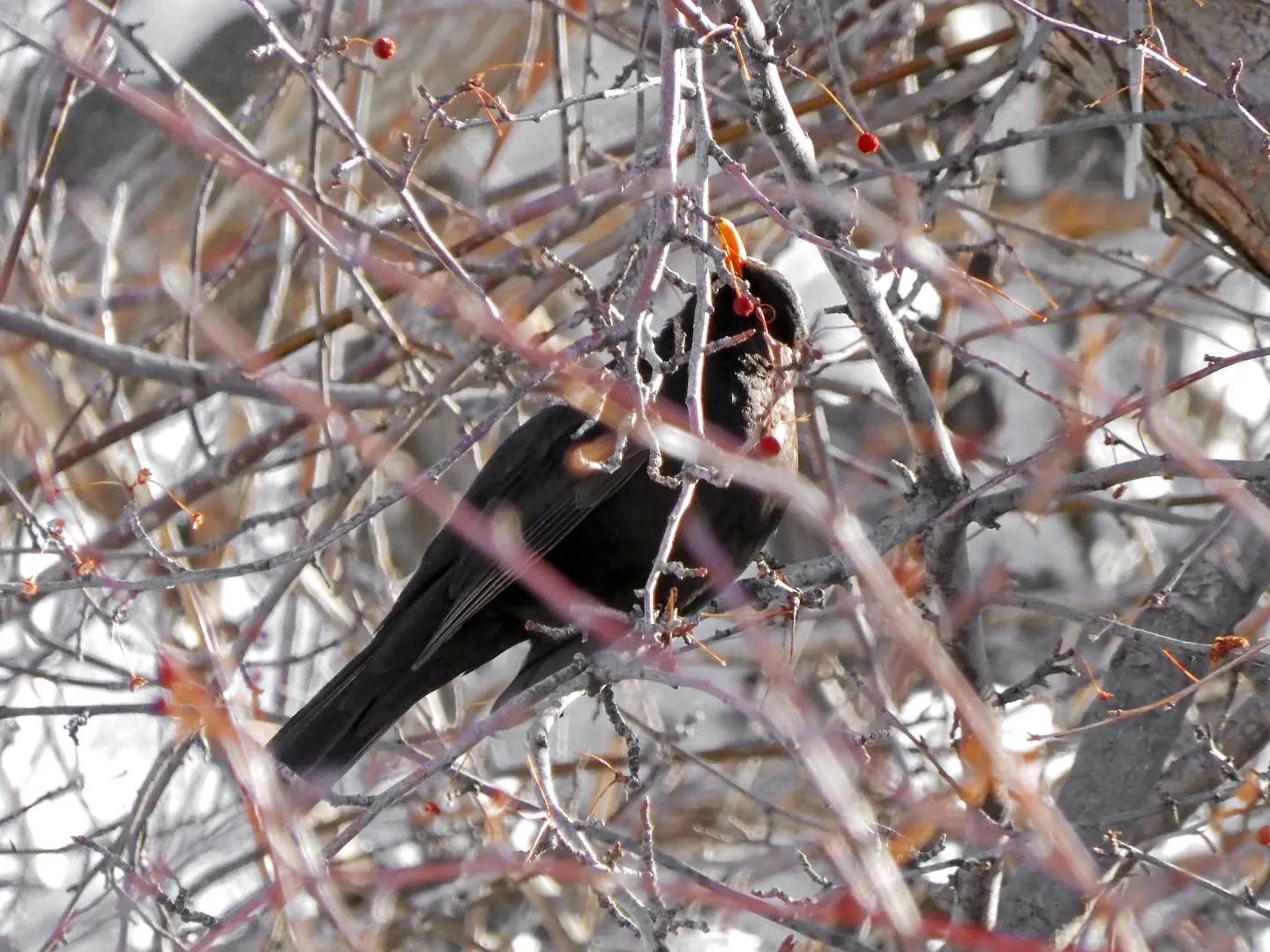 — В Восточном Казахстане проходит северная граница ареала черного дрозда. На границе ареал пульсирует: то расширяется, то сокращается, и численность вида здесь невелика, — сообщил профессор ВКУ имени С. Аманжолова Константин Прокопов. — В Восточном Казахстане черный дрозд обитает в Алакольской и Зайсанской котловинах. Единичных особей наблюдали в Южном Алтае — в долине Бухтармы, у села Арчаты и села Катон- Карагай. В Усть-Каменогорске черный дрозд впервые встречен мной 25 февраля 2009 года. В пасмурный день 3 февраля текущего года пара черных дроздов кормилась на дичке в Ульбинском районе Усть-Каменогорска.